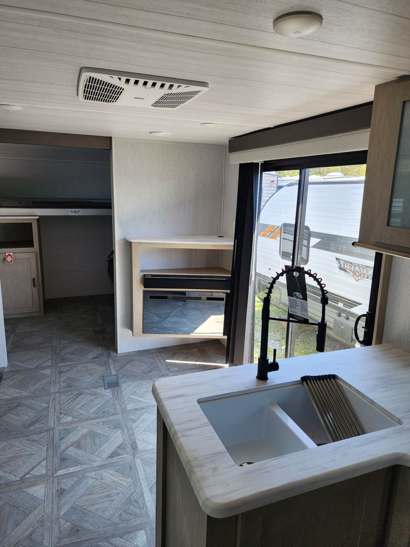 The rear bunkhouse offers excellent privacy and flexibility for kids, guests, or extra storage. The 36VBDS is one of Wildwood’s most popular family layouts — clean, open, and extremely functional.