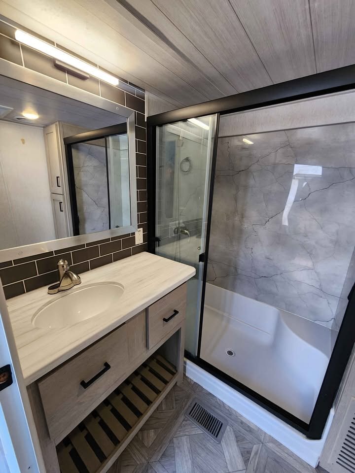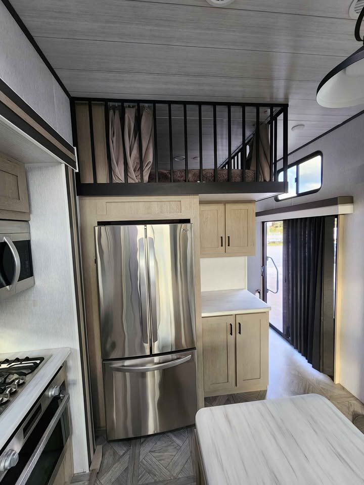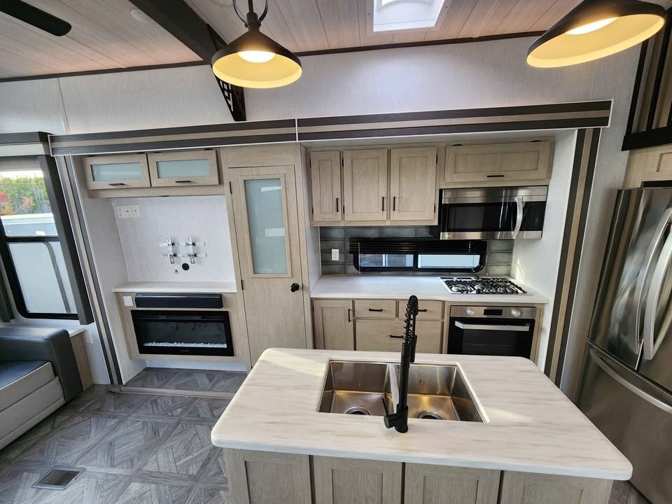 This unit is exceptionally well equipped and a must-see for anyone seeking a high-end destination trailer with residential features.