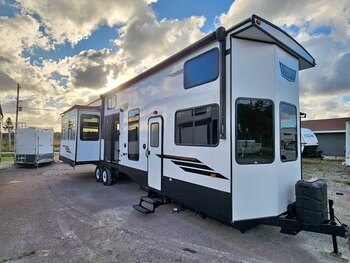 The 2025 Forest River Wildwood Lodge 40RLB is a premium destination trailer designed to deliver a true residential cottage look and feel. With its open floorplan, this model maximizes living space while offering upscale comfort and functionality for seasonal or extended stays.