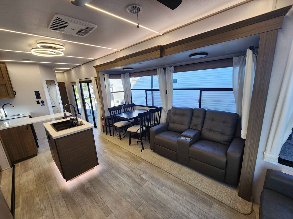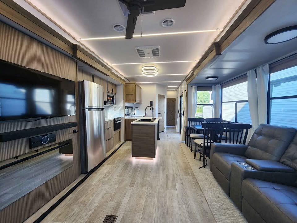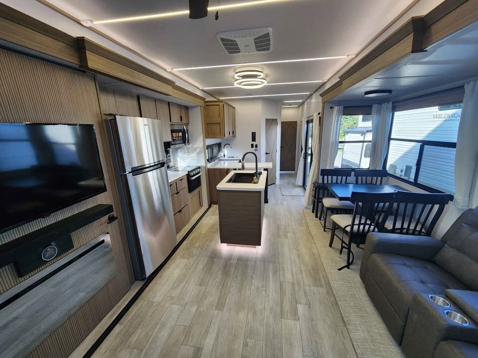 Designed for seasonal sites, lake properties, and extended stays, the Wildwood Lodge 40RLB combines style, space, and comfort in one exceptional destination trailer.