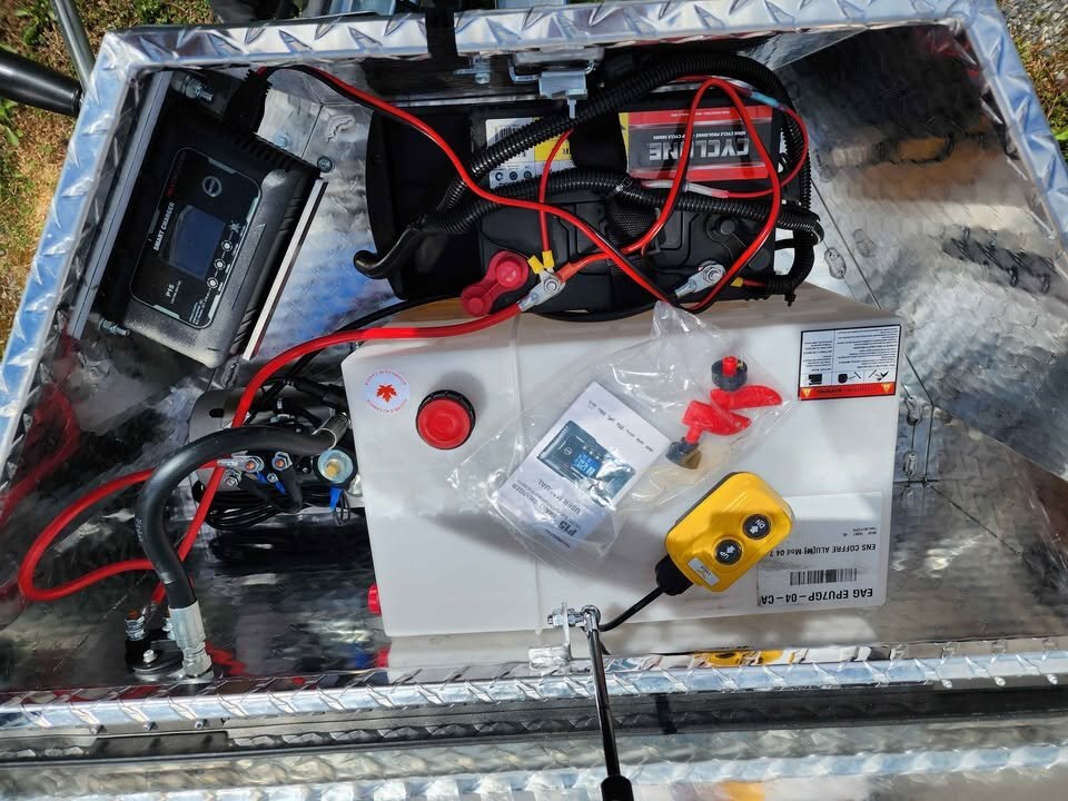 Additional features such as a tarp and cover system, smart battery charger, and 7,000 lb drop-leg jack make this trailer fully equipped and job-ready right off the lot.