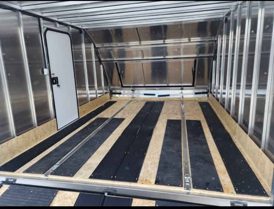 NITRO HYBRID Standard OptionsAll Aluminum Construction 28″x60″ Radius Side Access Door LED Lighting 3/4″ Decking .030 Screwless Side Panels 32″x72″ Front Hatch Door Torsion Braked Axles Hingeless Rear Flap 1 Piece Seamless Roof LED Dome Lights Wheel Jack 2 Rows of Tie Down Track 8″ Kickplate Side Vents Side Step A-Frame Coupler |